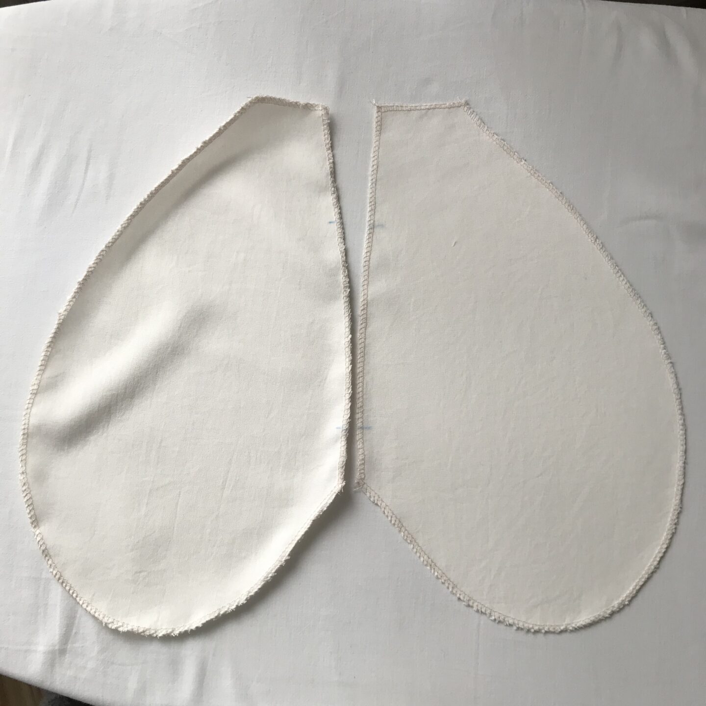4. Kieszenie, pamiętajmy by na początku wykończyć je overlockiem i dokładnie rozprasować. Po prawej stronie na zdjęciu poniżej mamy prawą część rozprasowaną i lewą nie rozprasowaną. Wszycie takiej nierozprasowanej skutkuje “ściąganiem się” materiału. 🙂