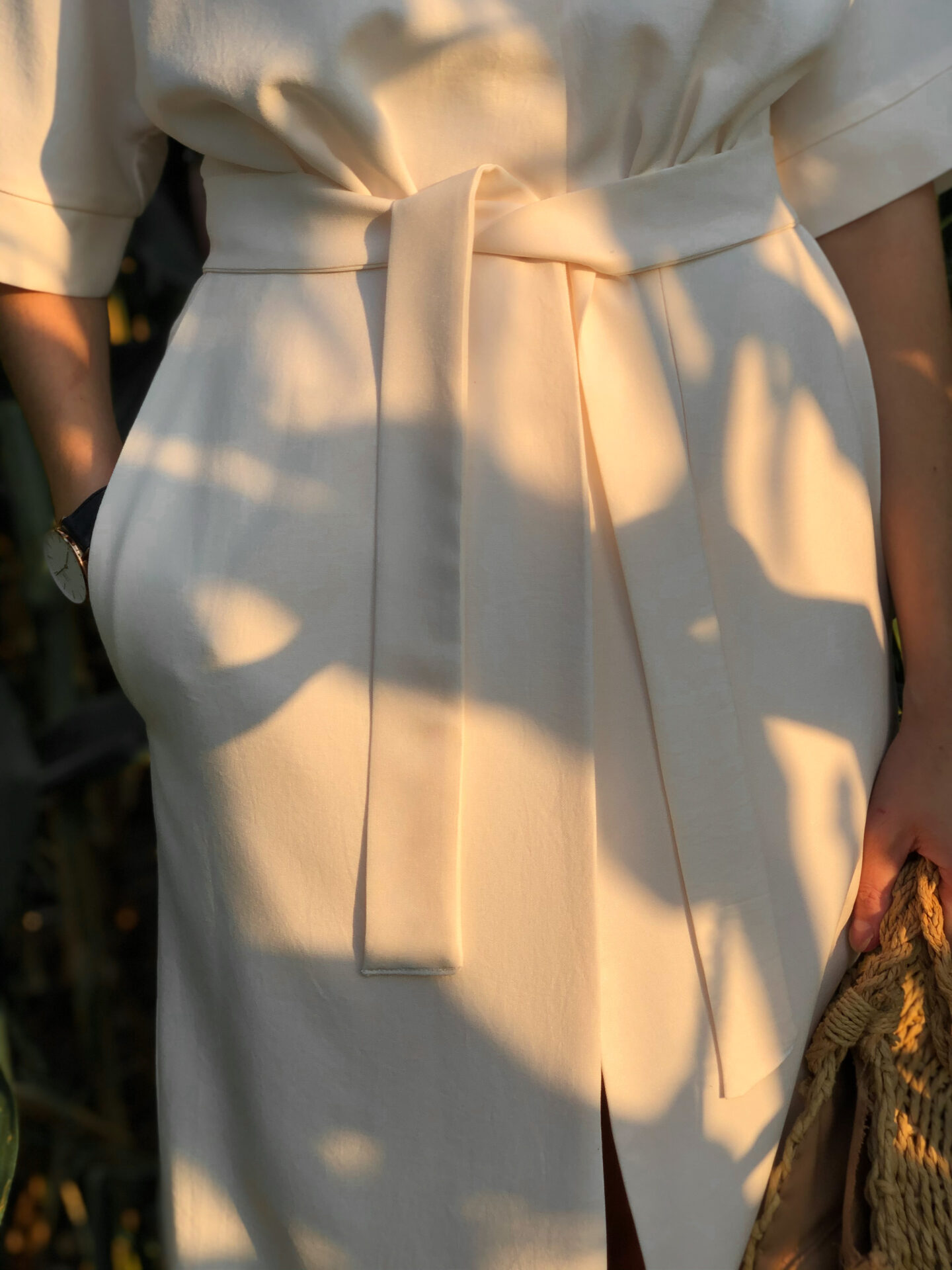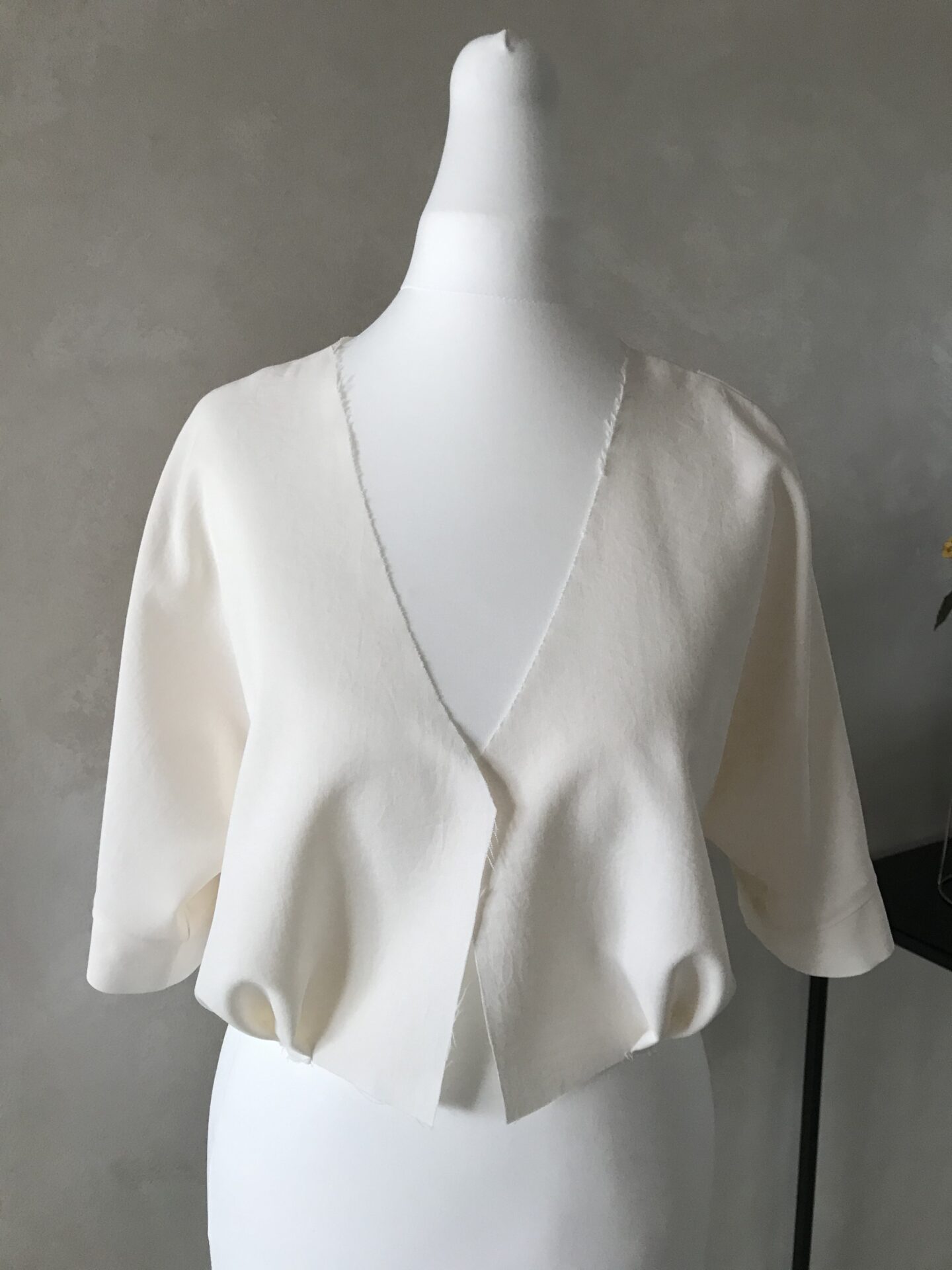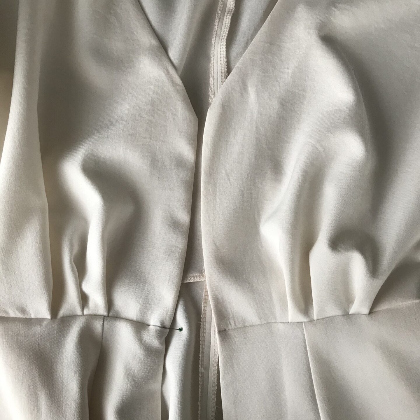 5. Ostatni krok, to po przyszyciu obłożenia przyszyłam ręcznie tył obłożenia do szwu tyłu sukienki. 🙂 (poniższe zdjęcie z lewej)