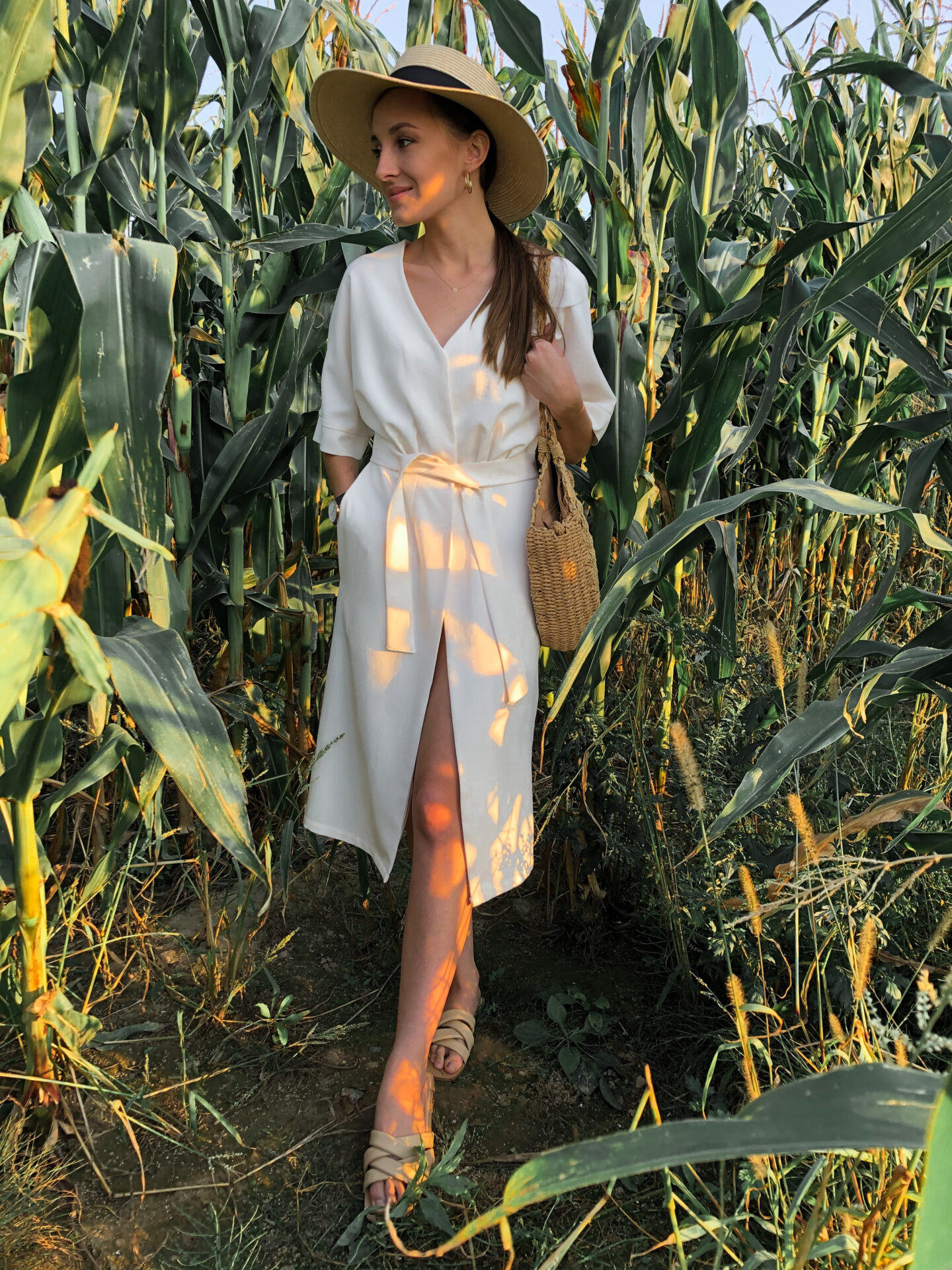Dziś przedstawiam Wam moją kolejną perełkę. Krój jest klasyczny z nutką nowoczesności, ma kieszenie, pasek, szerokie rękawy – idealna na lato a w innej wersji kolorystycznej nawet na jesień. 🙂 Ja zrobiłam ją na jeden guziczek i pasek. W wersji od viki jest zapinana normalnie na guziki. Tę wersję polecam najbardziej, sukienka nie będzie się rozchodzić. Pasuje dosłownie na każdą okazję. : ) Tkanina to bawełna i len – według mnie jest to najlepszy rodzaj na taki model. Niestety zakupiona w lokalnym sklepie, więc nie mogę Was odesłać do linku.