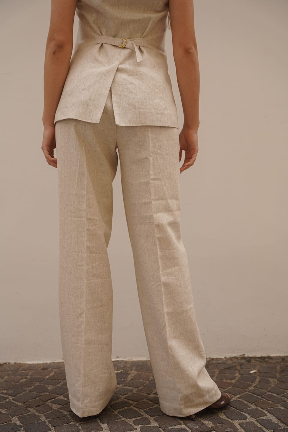 Spodnie SERENE możesz nosić solo lub zestawić z dopasowaną kamizelką SERENE, tworząc nowoczesny set garniturowy. To świetne rozwiązanie dla kobiet, które chcą wyglądać profesjonalnie i stylowo, ale jednocześnie cenią sobie swobodę i naturalność materiałów. Taki zestaw doskonale sprawdzi się w pracy, na spotkaniu biznesowym lub ważnym wydarzeniu.