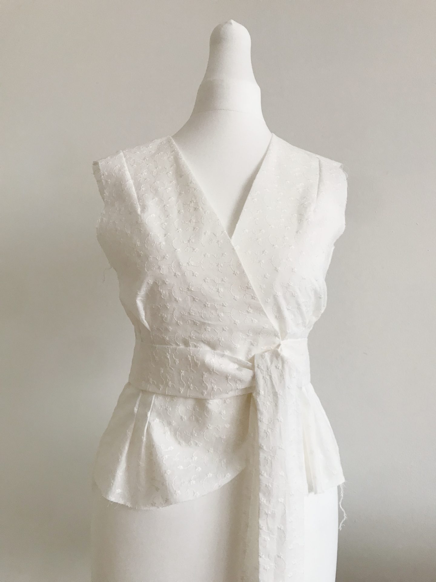 5. Teraz wystarczy uszyć pasek, wykończyć dekolt (odpowiednie ułożenie do nitki prostej) i dół z paska (nitka prosta) podwójnie złożonego. 🙂