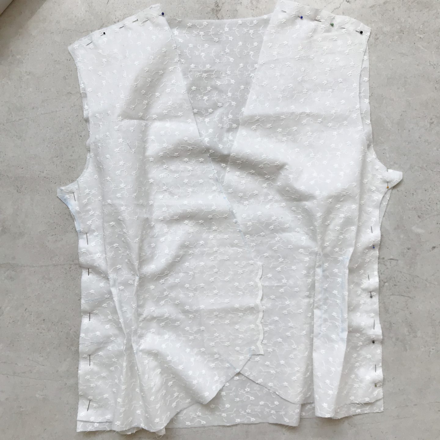 3. Zszywacie zakładki, następnie boki i ramiona.