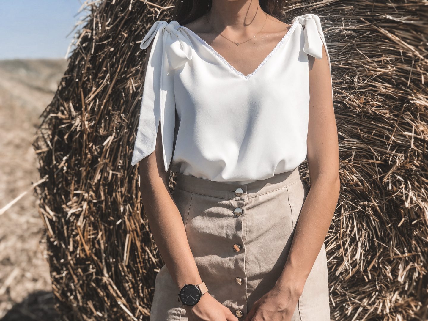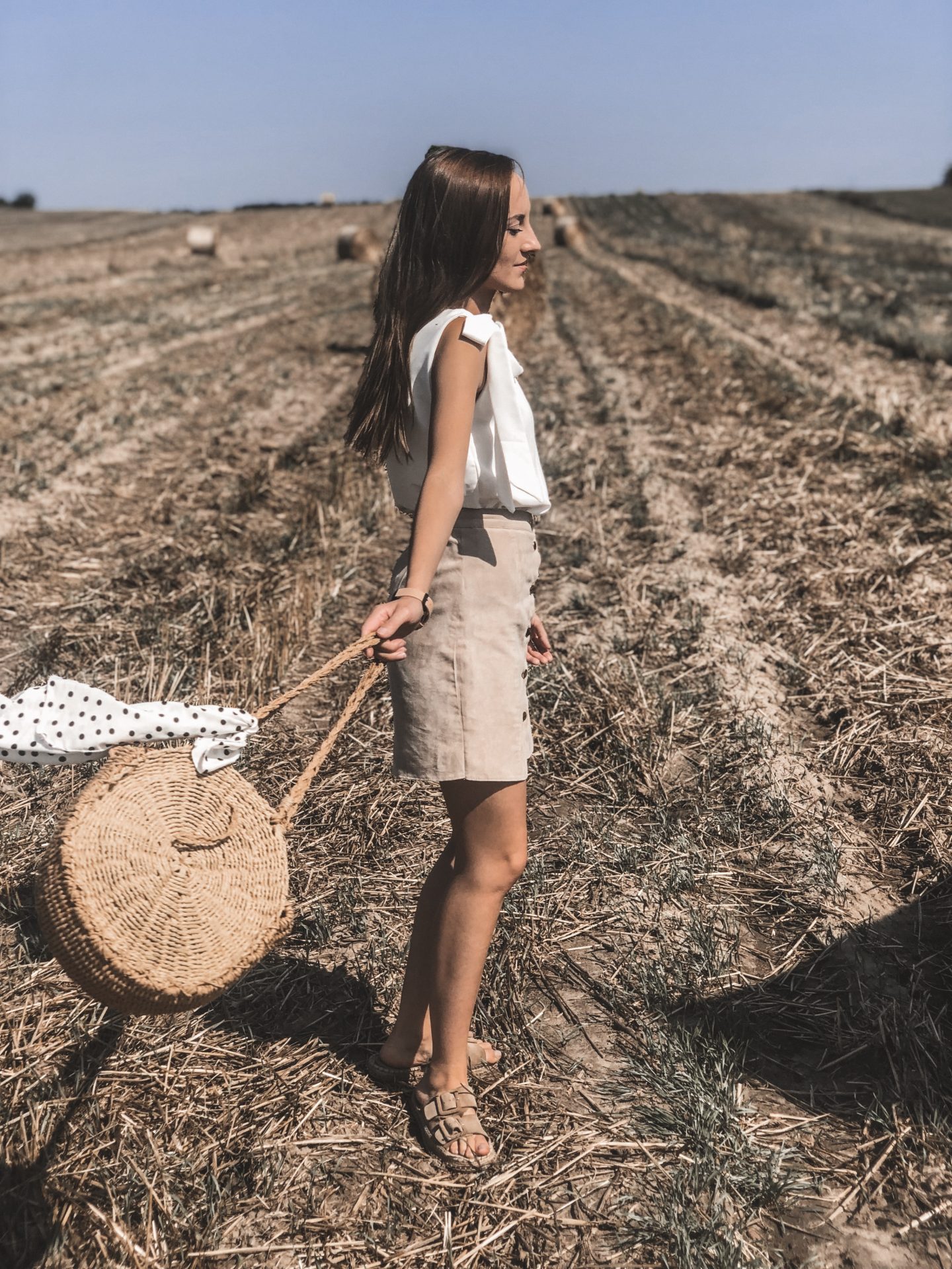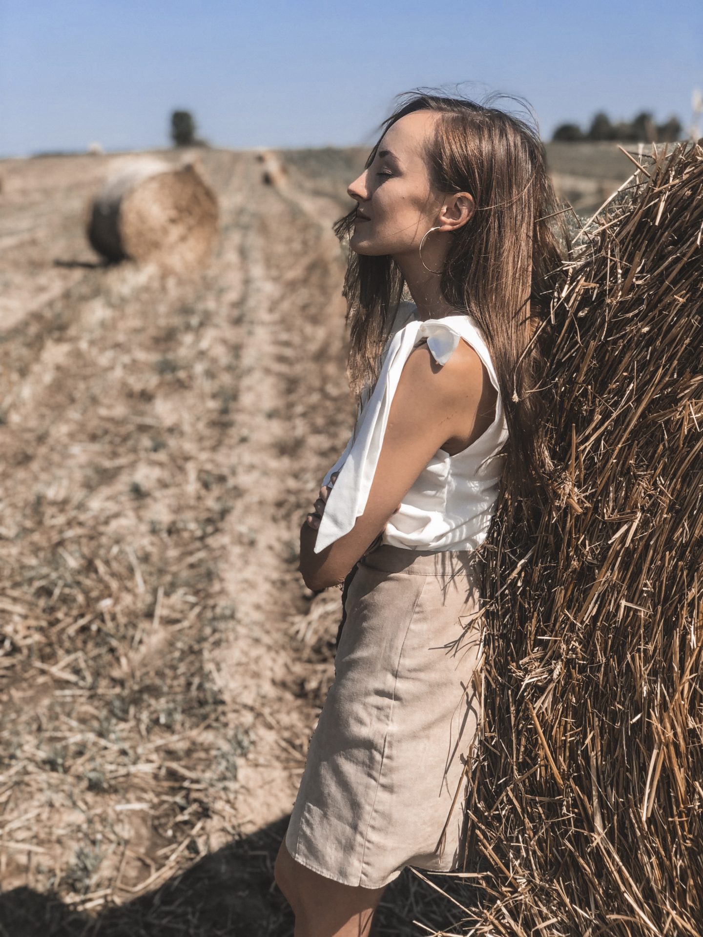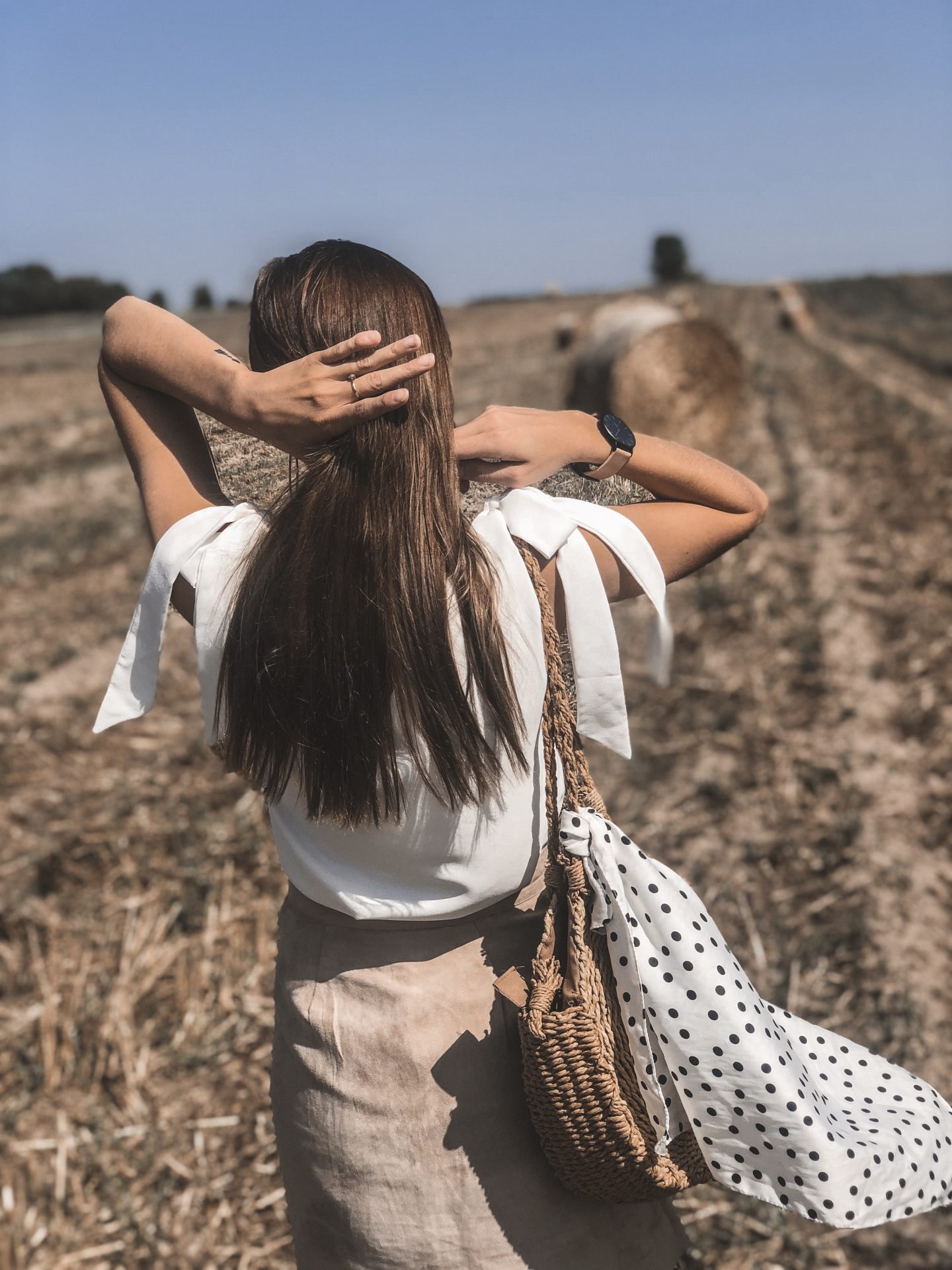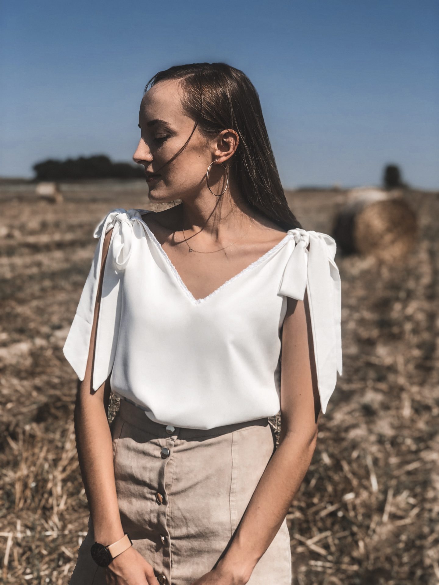 Właściwie lata już nie ma, ale z racji, że jestem miłośniczką upałów i wysokich temperatur, letnie rzeczy będą pojawiały się cały czas… : ) Projekt z połączenia wiskozy i poliestru, całkiem przyjemny, gładki, przewiewny – i co najważniejsze! nie pęczkuje się <3 Wiązanie tylko u góry, na ramionach, więc uszycie jej jest bardzo szybkie i mega proste. Dodatkowo szyłam z podwójnego materiału więc wszystkie szwy są niewidoczne.
