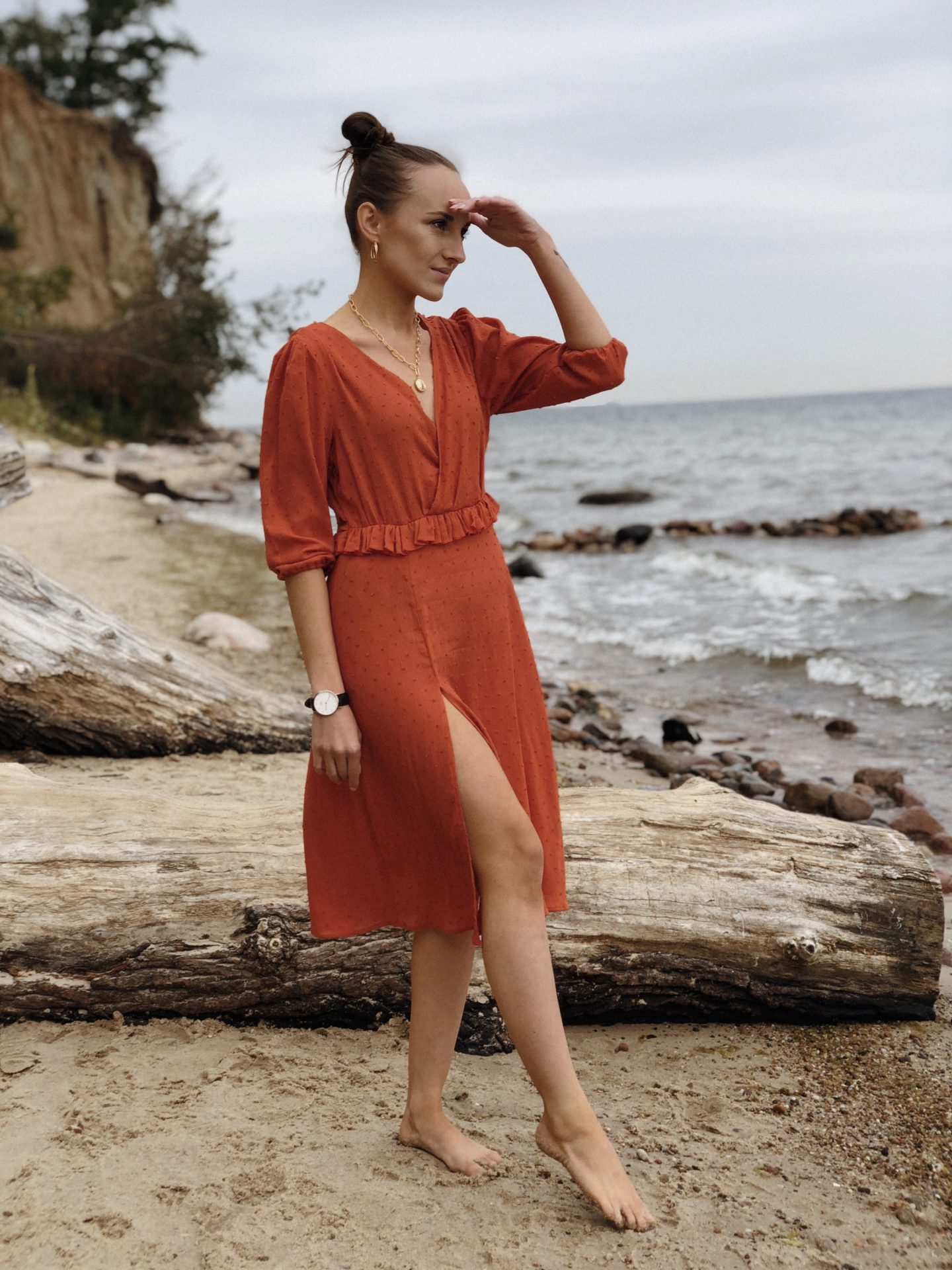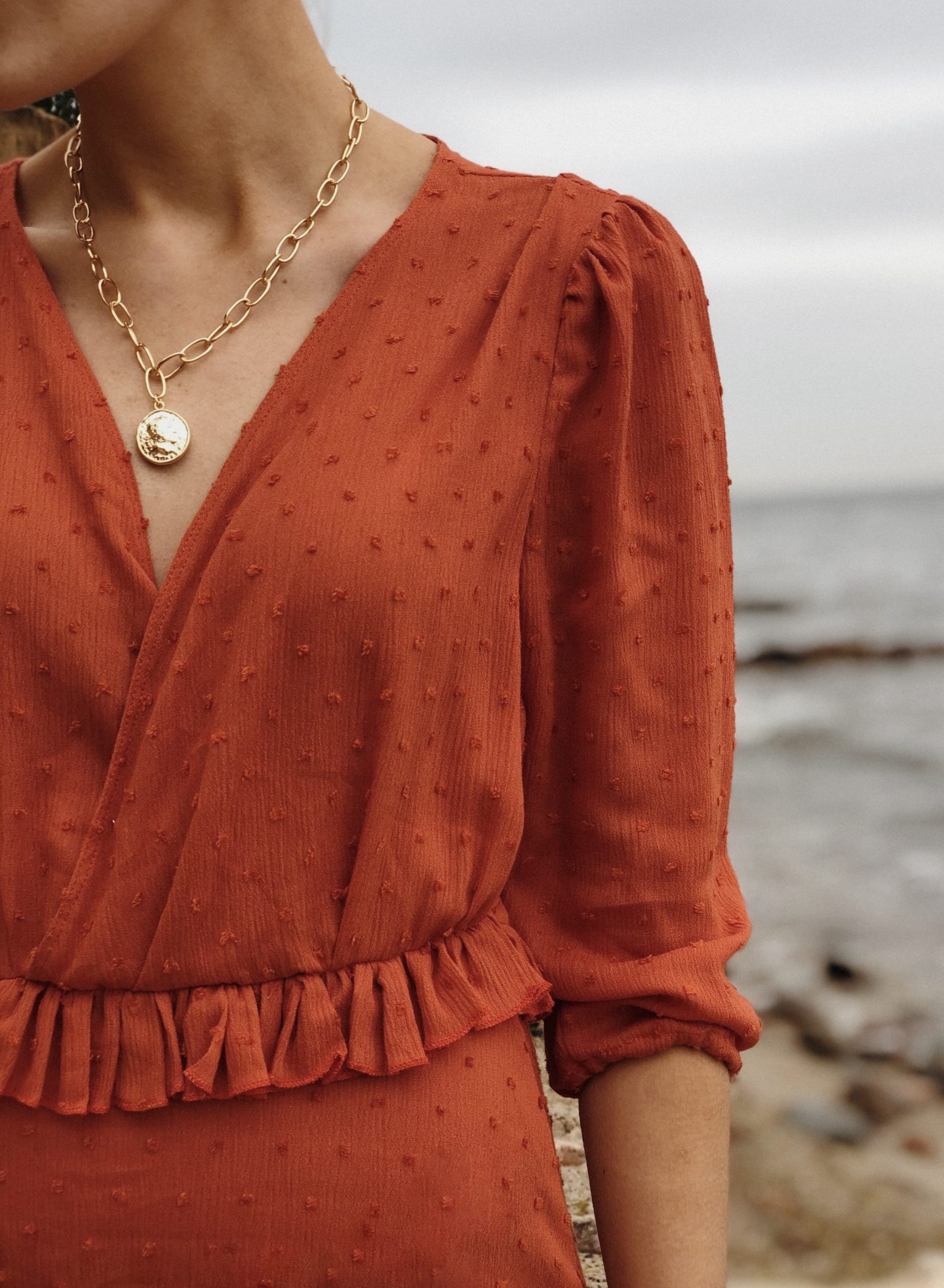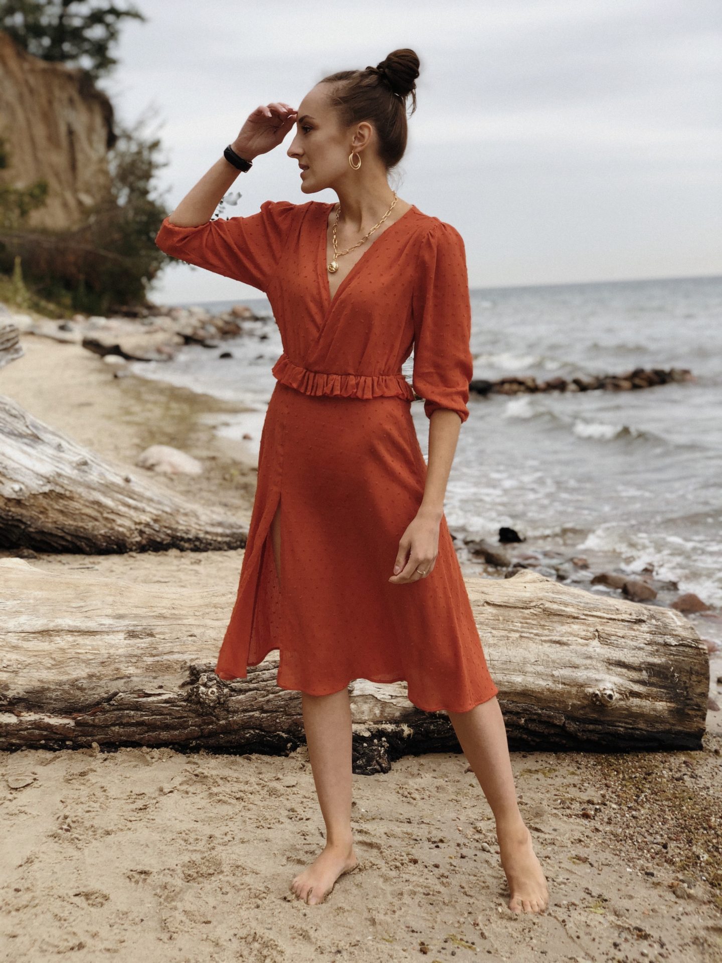 Dziś sukienka w kolorze wymarzonym! Długo szukałam odpowiedniego materiału w tym odcieniu, choć projekt miałam już daaaawno gotowy. Oczywiście, jest miliony odcieni pomarańczy, lecz ja nie należę do miłośników wyraźnych kolorów…i postanowiłam na wygaszoną pomarańczę a raczej odcień rdzy. <3