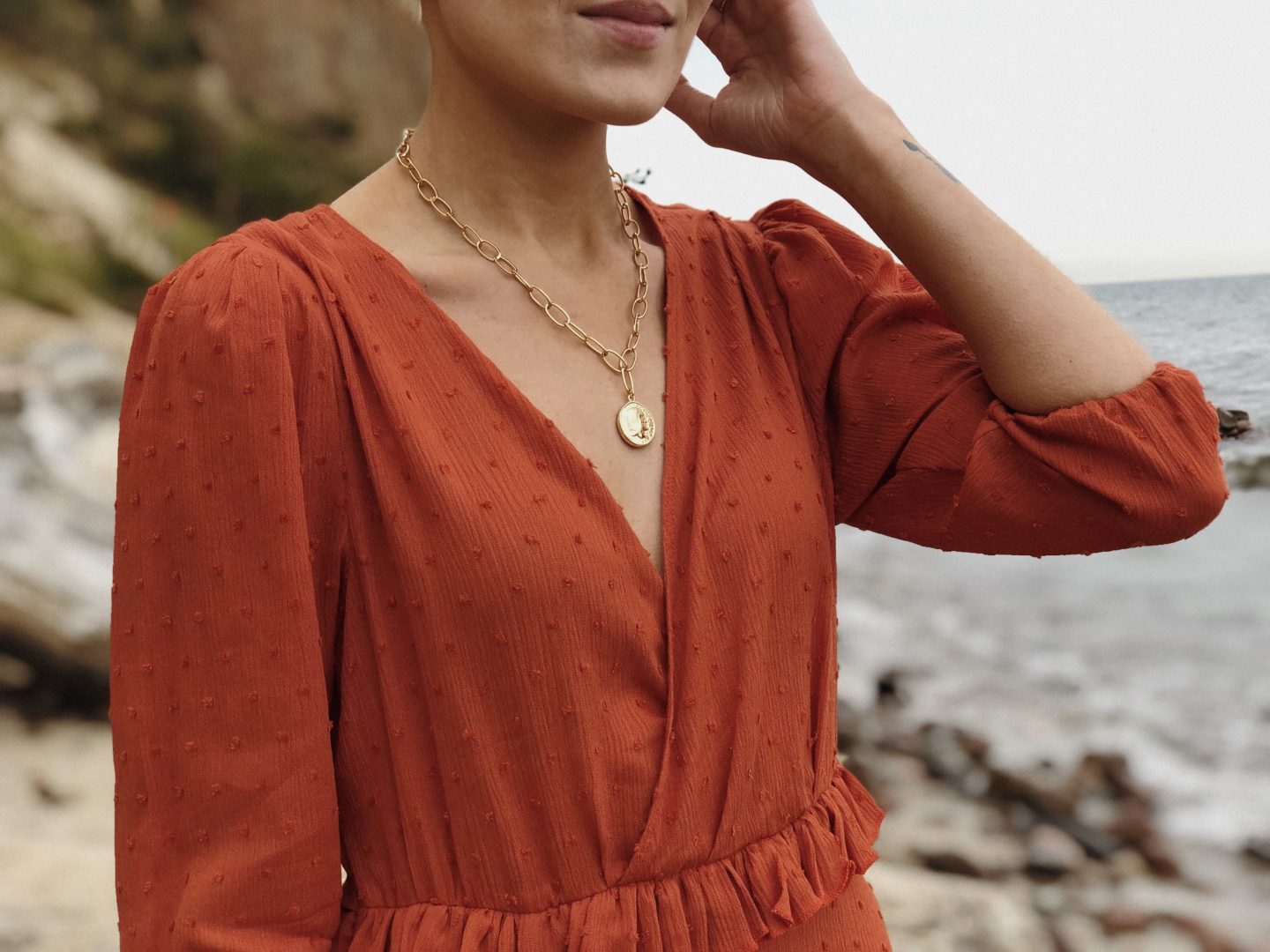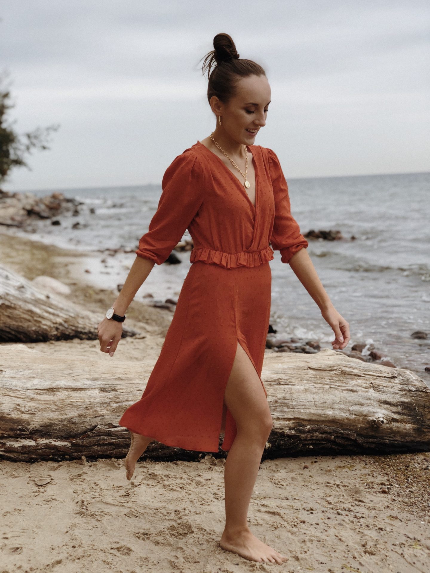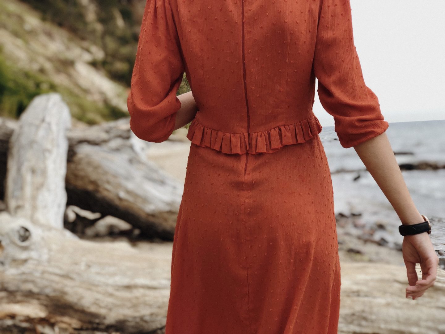Dziś sukienka w kolorze wymarzonym! Długo szukałam odpowiedniego materiału w tym odcieniu, choć projekt miałam już daaaawno gotowy. Oczywiście, jest miliony odcieni pomarańczy, lecz ja nie należę do miłośników wyraźnych kolorów…i postanowiłam na wygaszoną pomarańczę a raczej odcień rdzy. <3