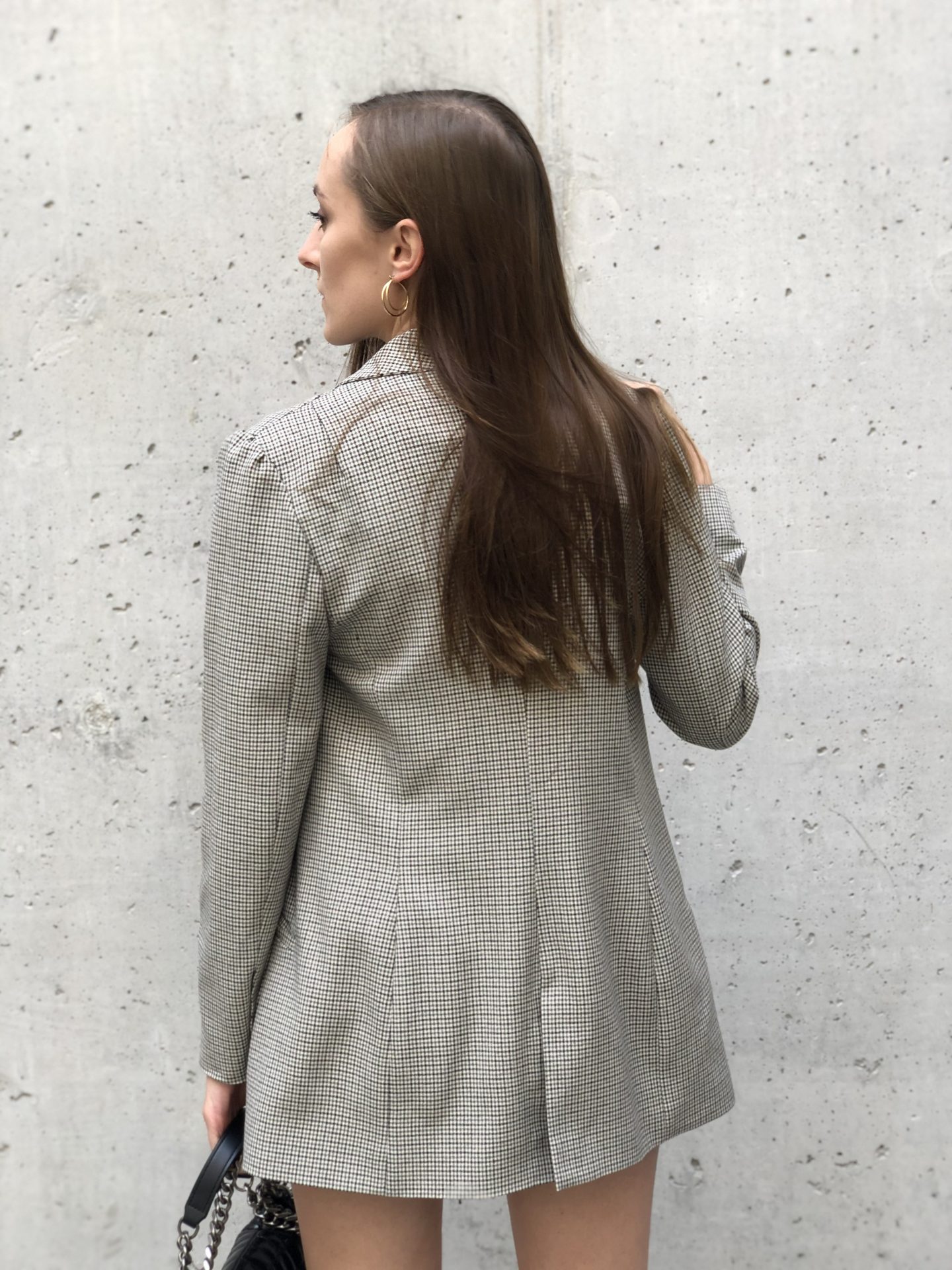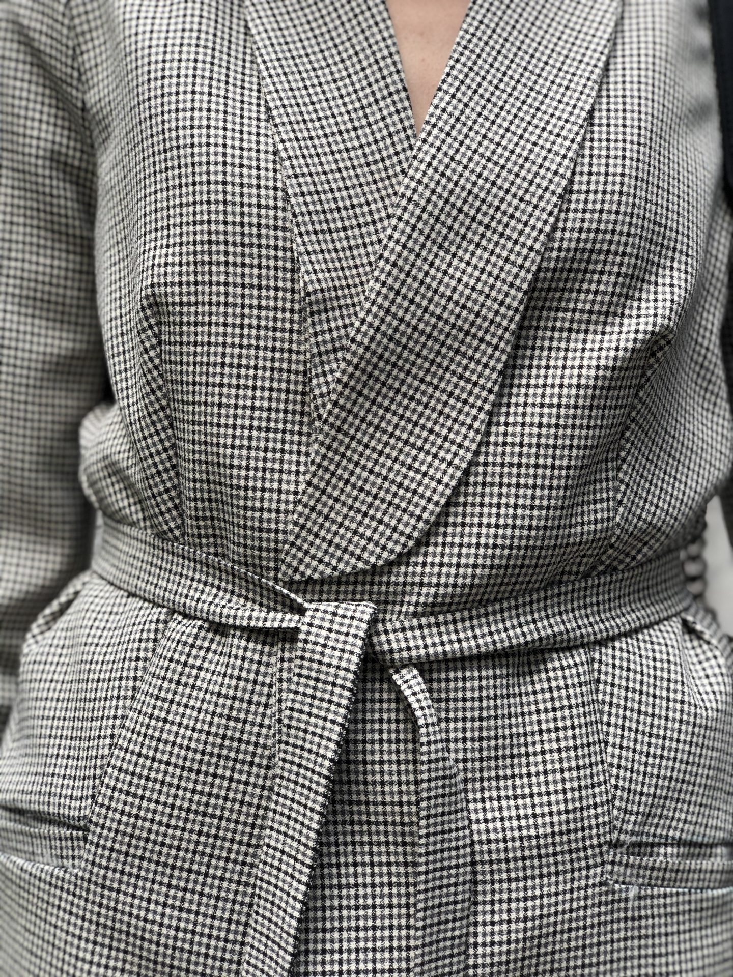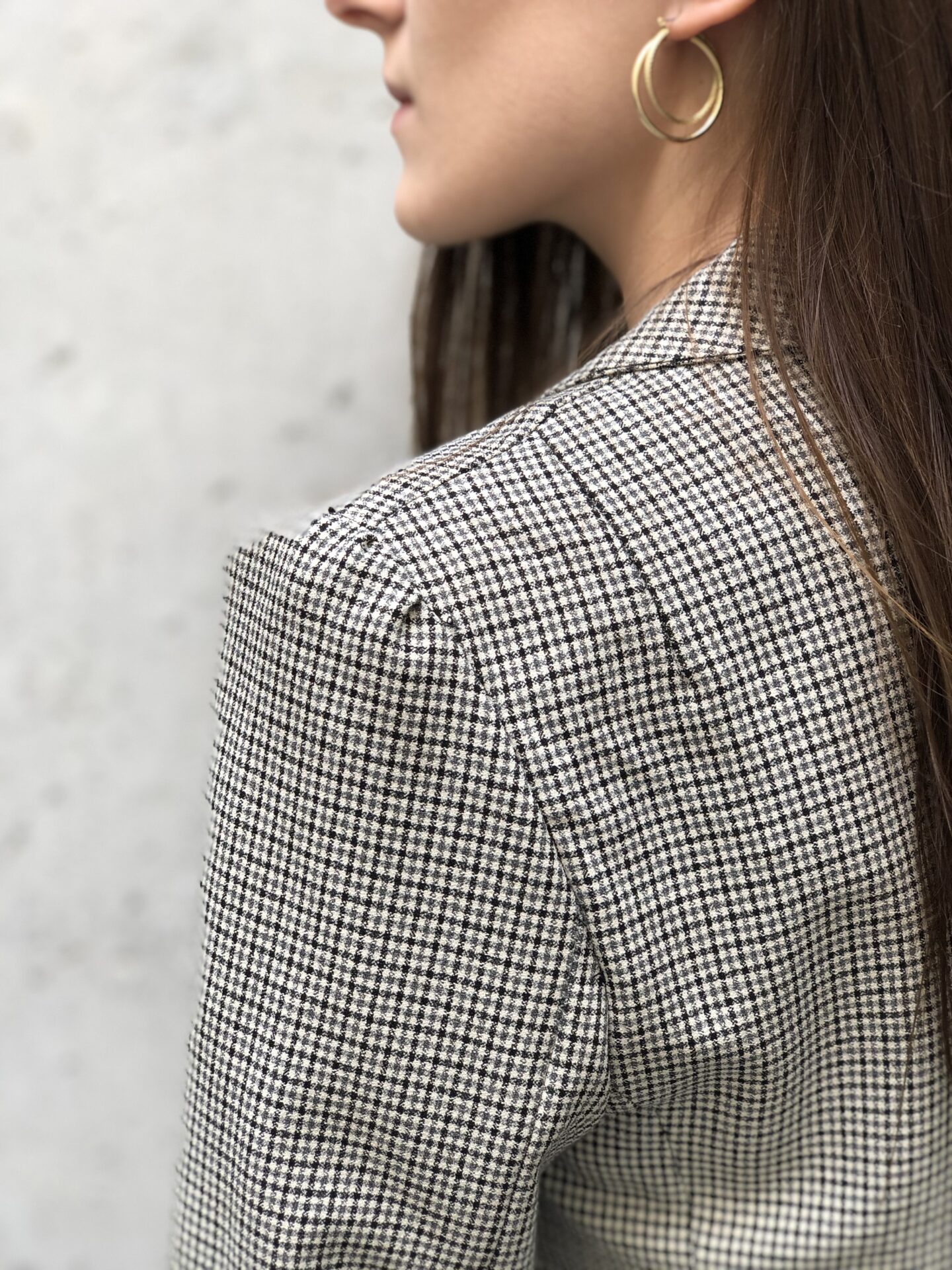 - Jeśli pierwszy raz szyjecie marynarkę, dużo łatwiej będzie z gładką tkaniną, bez wzorów. Ja lubię wyzwania, w związku z czym wybrałam najgorzej – kratę. Jeszcze taka drobna to pół biedy. Ale duża krata?! To dopiero wyzwanie! : 0