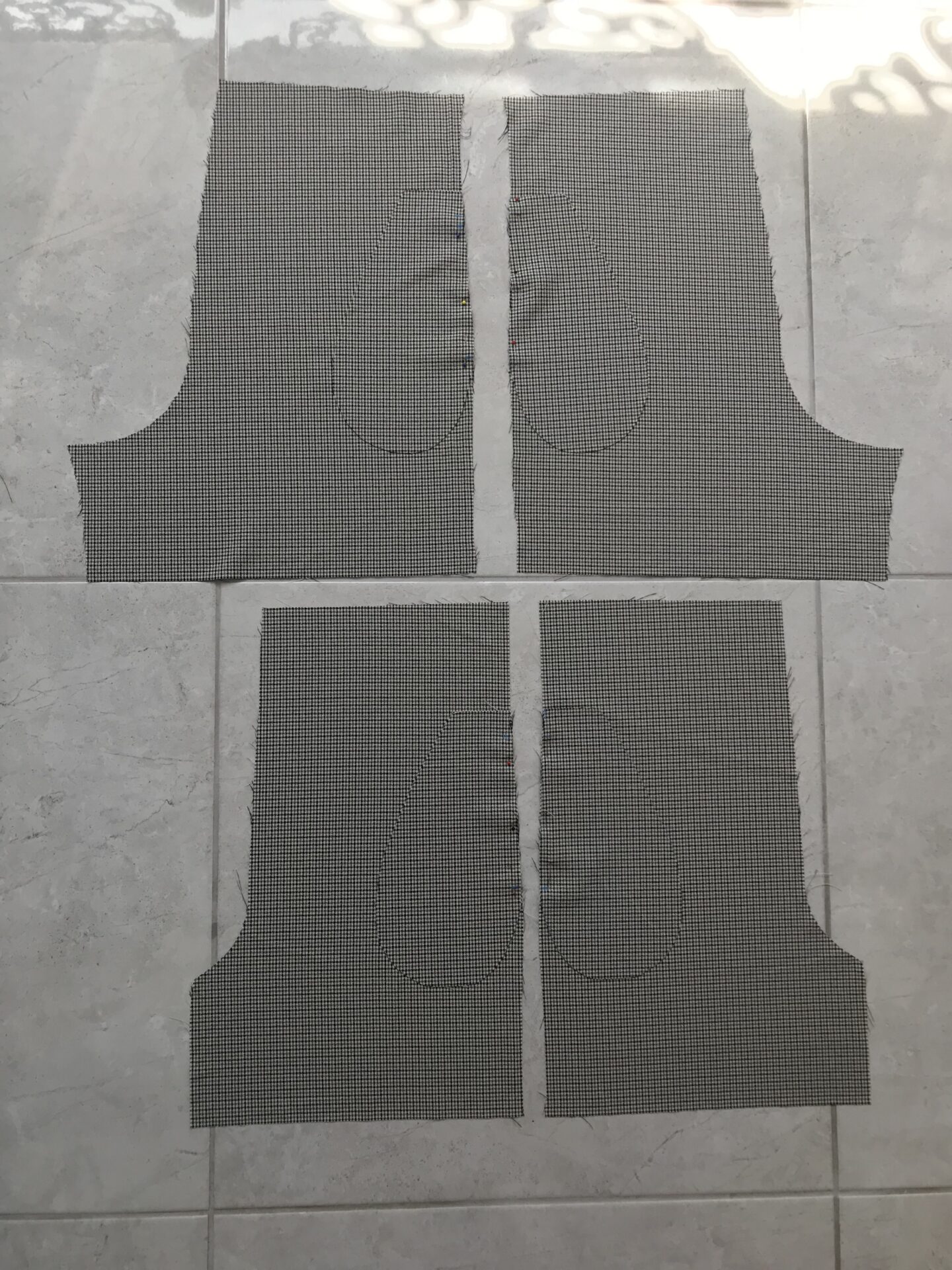 3. Jeśli macie wykrojone, zabieramy się za zszycie, i kieszonki. ( muszą być podklejone ) (Spokojnie dziewczyny 🙂 Najgorsze dopiero przed Wami 🙂 ) Zszywamy, tył do rozporka, zakładki itp.