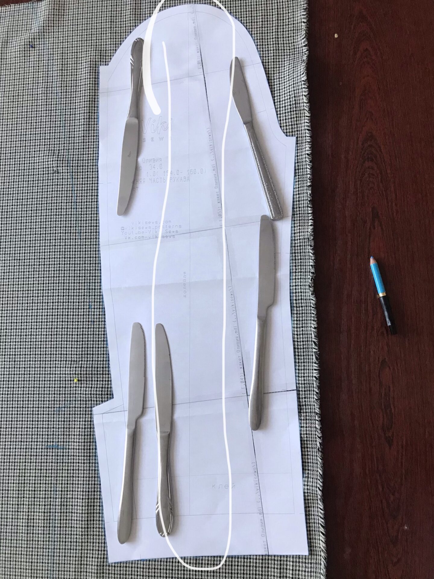 2. Wiadomo, jakieś pomoce trzeba mieć. Nie wygląda to za dobrze z tymi nożykami. : ) Ale krojenie to kluczowy i najważniejszy proces. Tutaj nie ma miejsca na brak precyzji, zwłaszcza przy takiej tkaninie i wzorze. NITKA PROSTA jest NAJWAŻNIEJSZA! <3 Jeśli tutaj schrzanicie, to najlepiej oszczędzić sobie nerwów i zacząć od nowa.